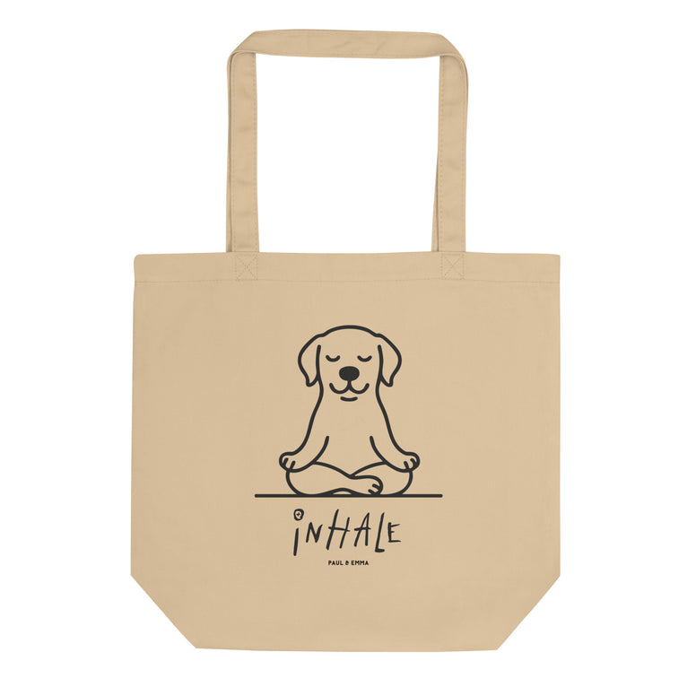 Diese Bio-Baumwolltasche bringt Achtsamkeit in deinen Alltag – mit zwei verschiedenen Yoga-Hund-Designs! Vorne der Hund im "Downward Dog" mit EXHALE, hinten der meditierende Hund im Lotussitz mit INHALE. Eine Tasche, zwei Stimmungen, 100% nachhaltig. Aus der Zen Collection von Paul & Emma – für alle, die wissen, dass die beste Meditation ein Spaziergang mit Hund ist.