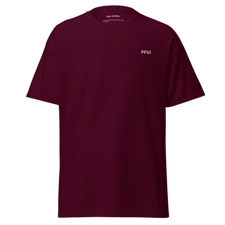 PFUI! – Das Kommando, das jeder Hundebesitzer kennt. Und das perfekte Statement für alle, die ihren Humor genauso lieben wie ihren Hund. Dieses klassische Unisex-T-Shirt aus unserer Kommando Edition trägt das gestickte "PFUI" dezent auf der linken Brust und das Paul & Emma Logo als weißen Print oben auf dem Rücken.