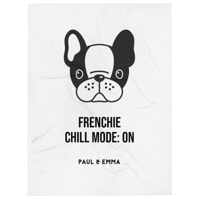 Minimalistisch und witzig: Der charakteristische Frenchie-Kopf über dem Statement "FRENCHIE CHILL MODE: ON" – in klassischem Schwarz auf hellem Untergrund. Das Paul & Emma Logo rundet das Design ab. Ein Look, der sofort gute Laune macht und zum Entspannen einlädt.